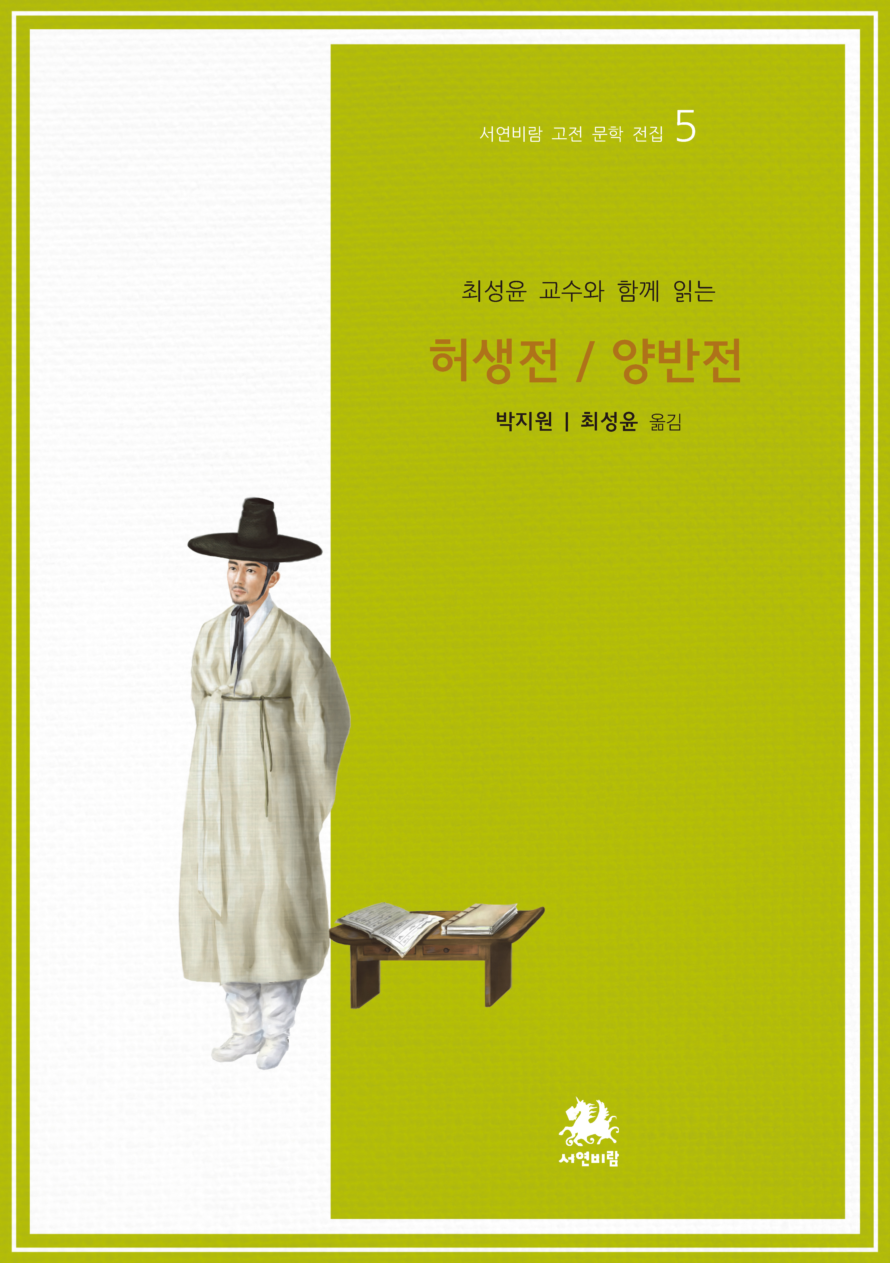 서연비람 고전 문학 전집 다섯 번째 작품으로 연암 박지원의 한문 단편들 중 가장 널리 알려진 아홉 편을 묶어 낸다. 「허생전」, 「호질」, 「양반전」 세 편의 이야기는 모르는 사람이 거의 없을 정도로 익숙한 작품들과 최근에 여러 선집에 수록되어 읽히고 있는 「광문자전」, 「예덕선생전」, 「민옹전」, 「김신선전」, 「마장전」, 「열녀함양박씨전」 등 나머지 여섯 편의 이야기도 수록했다.